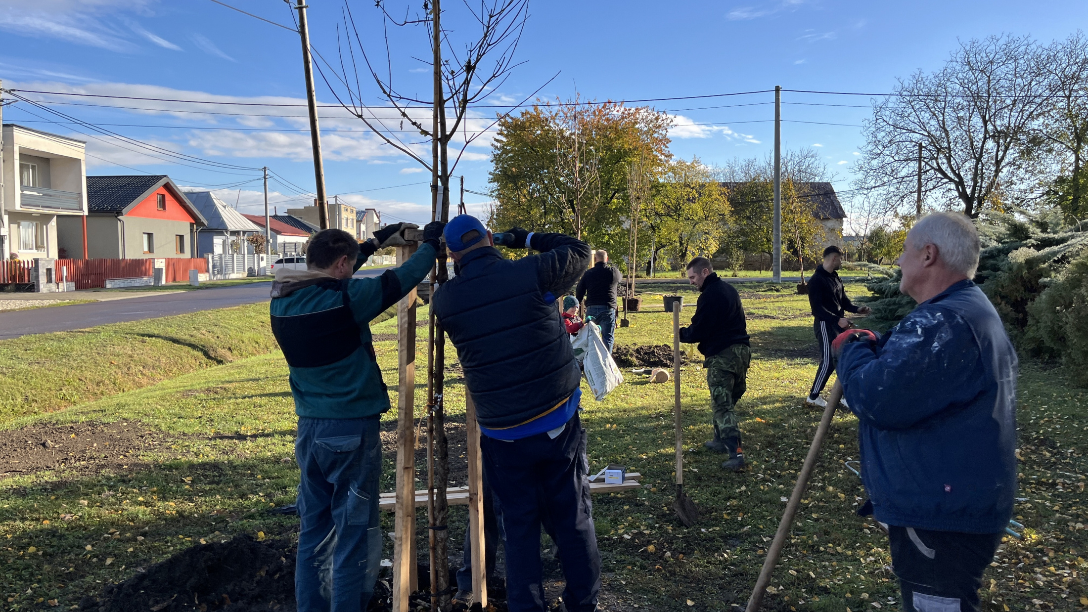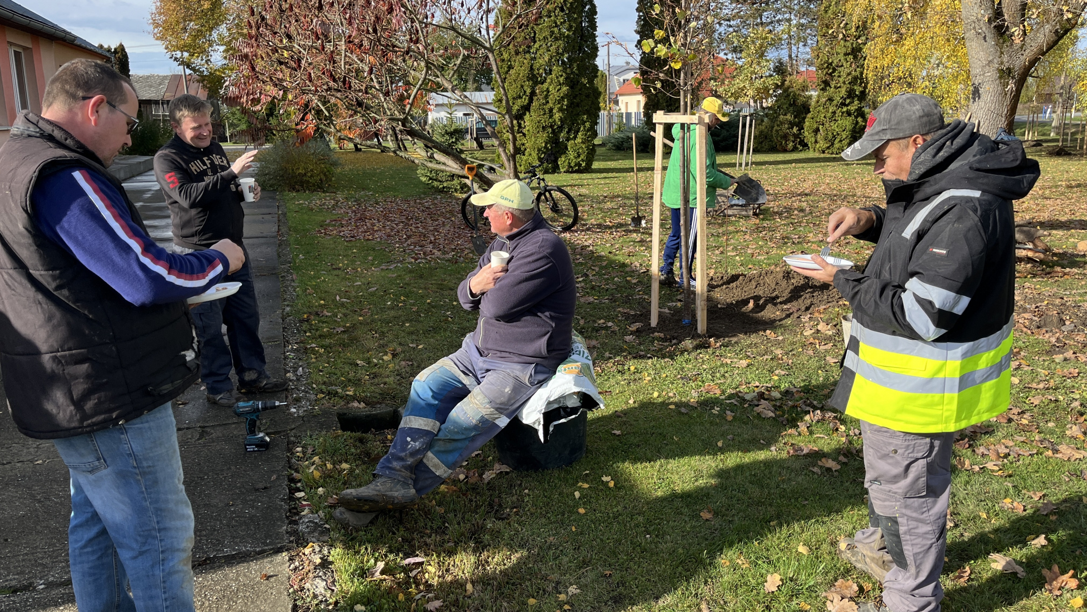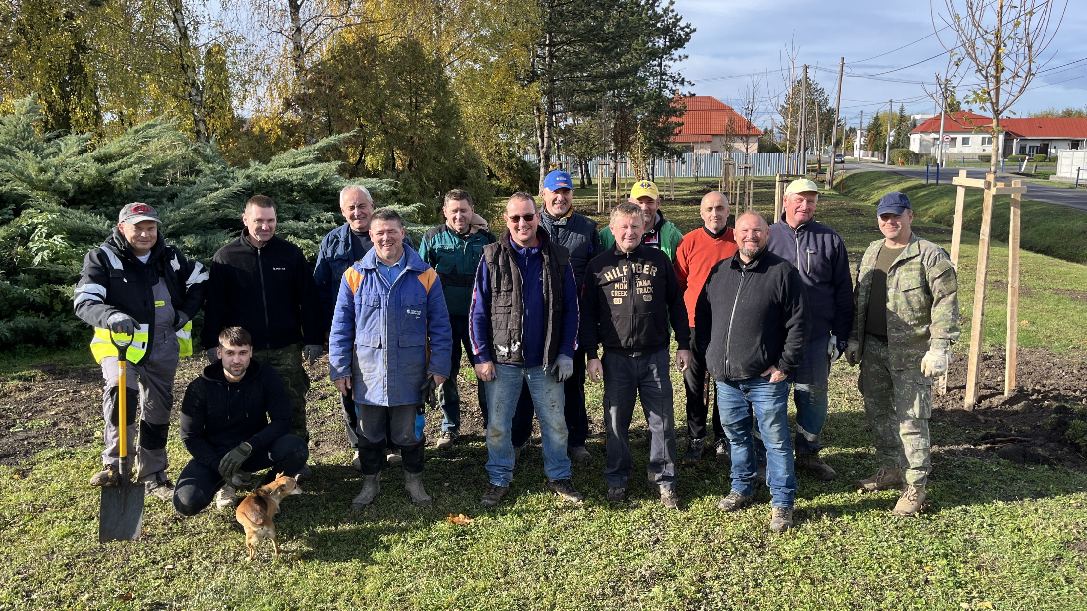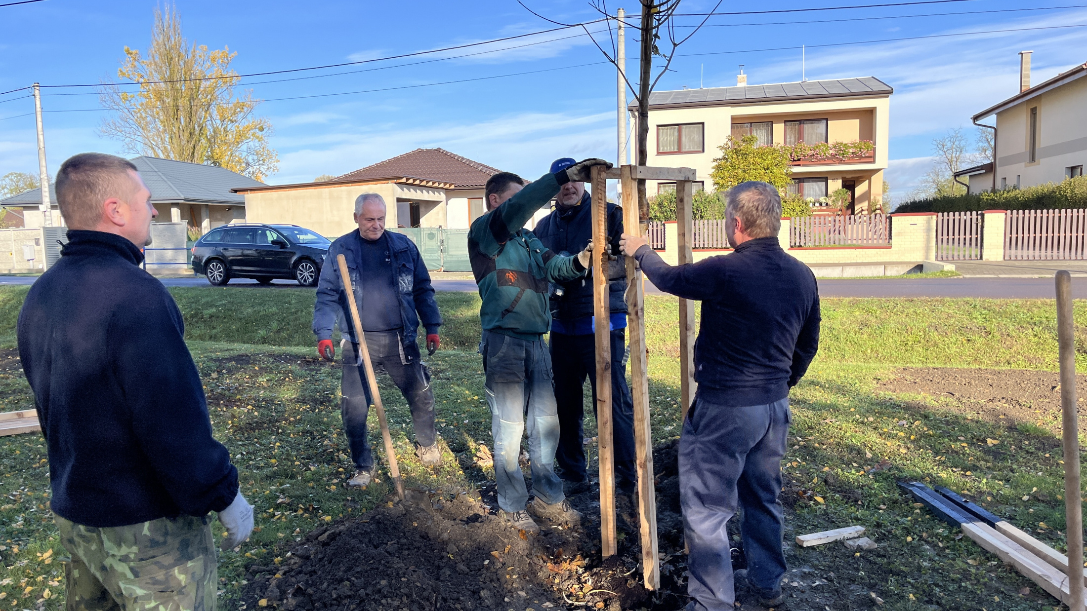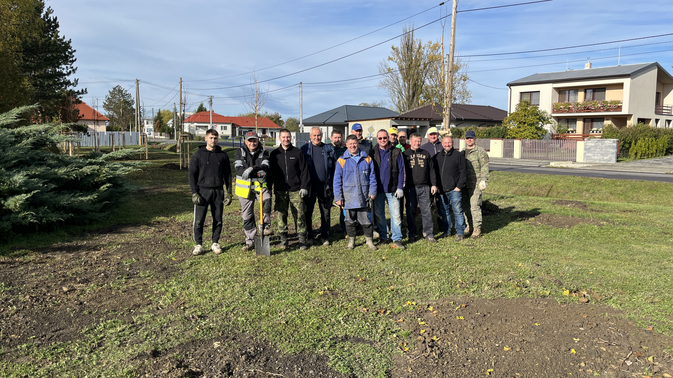 Brigáda pri výsadbe stromov pri OcÚ Dúbravka
