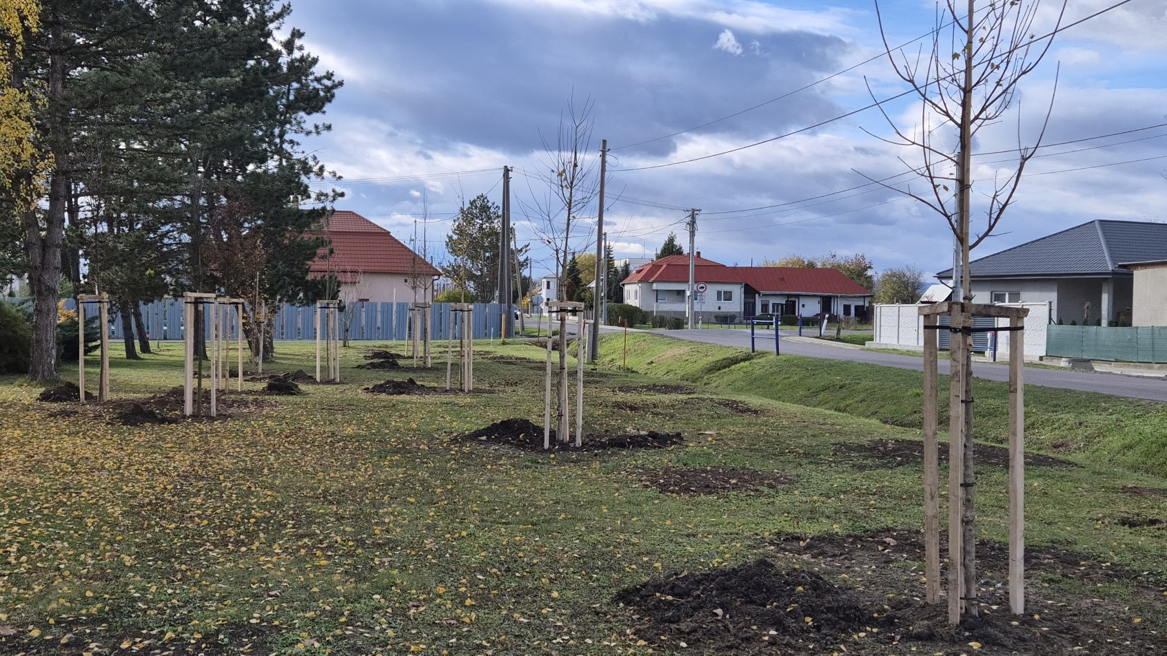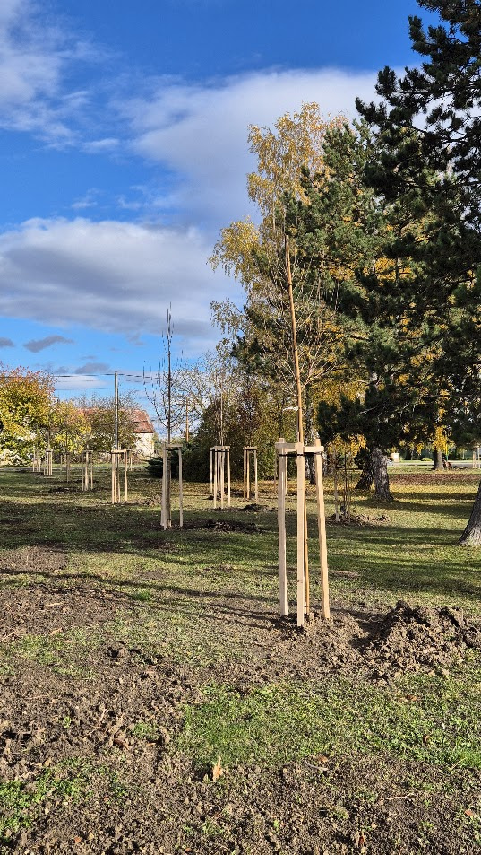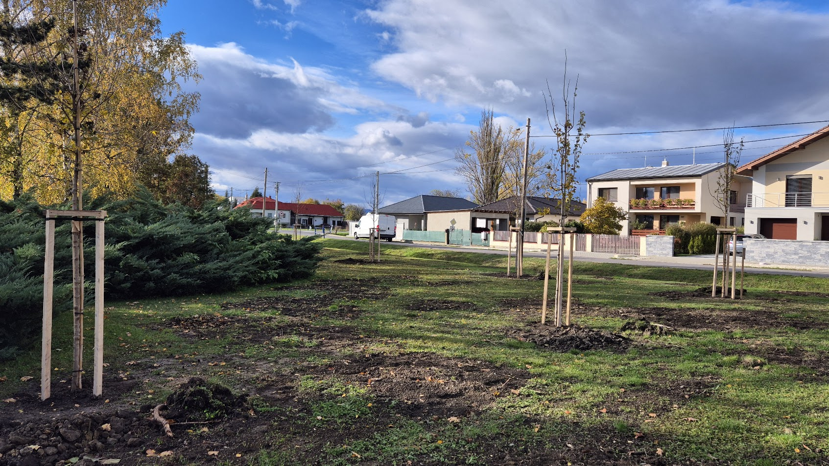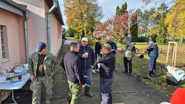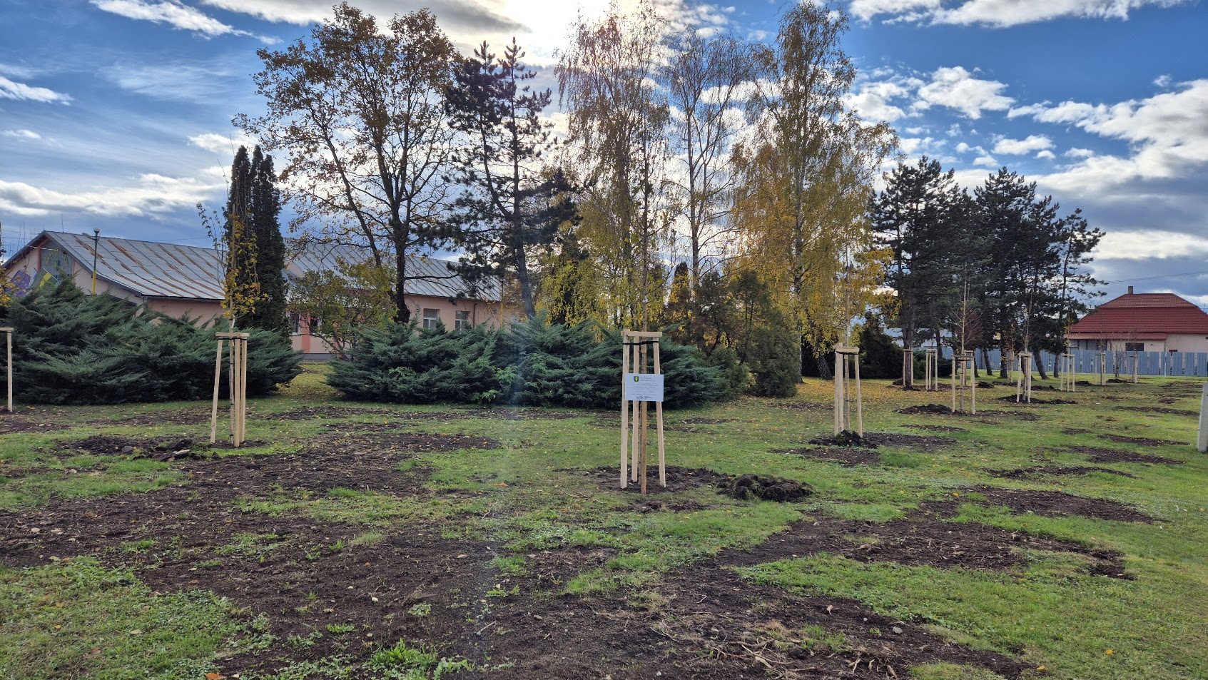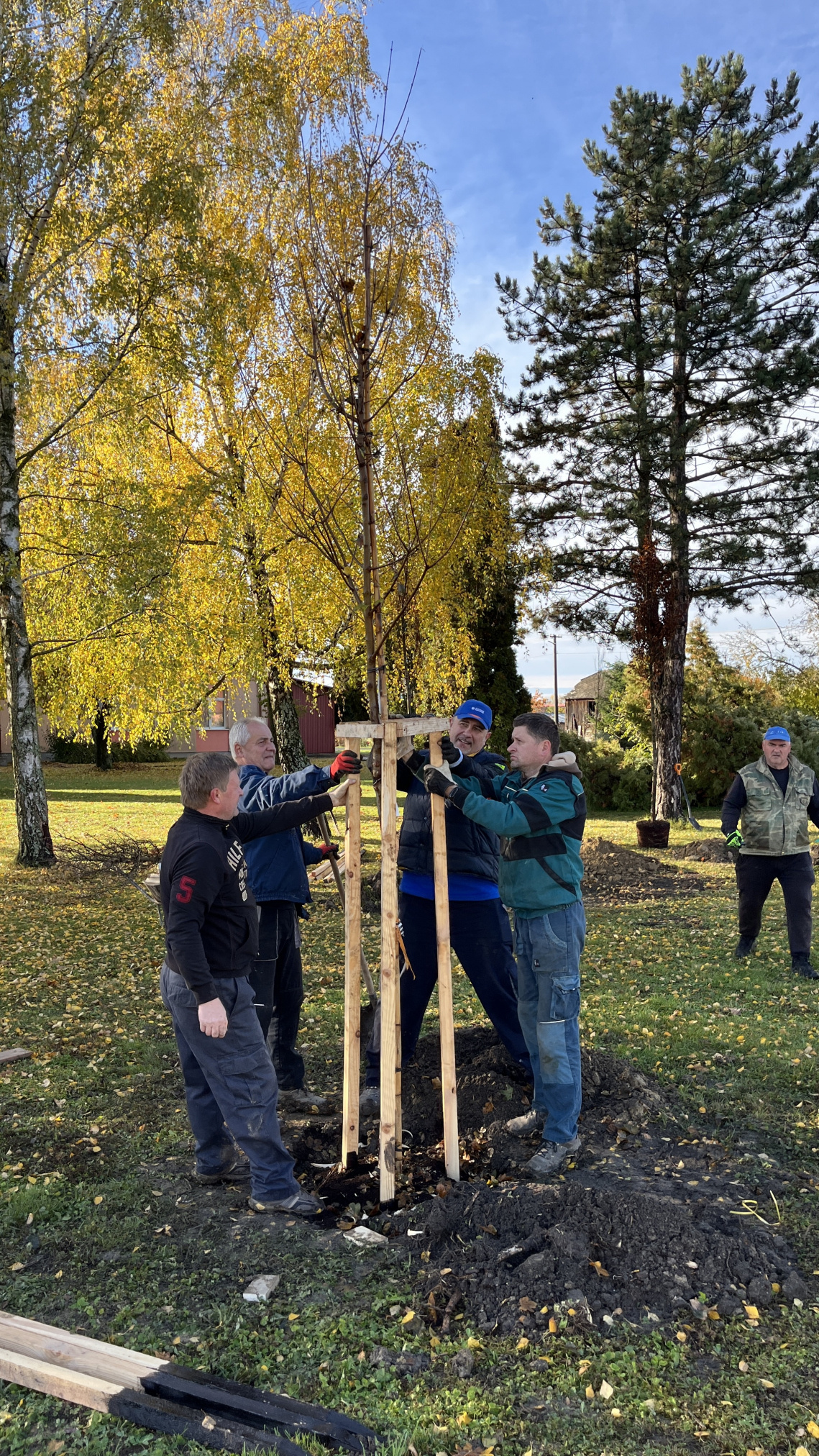Brigáda pri výsadbe stromov pri OcÚ Dúbravka